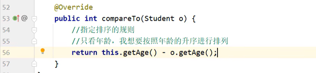 Student 实现 Comparable 接口,重写里面的抽象方法,再指定比较规则。