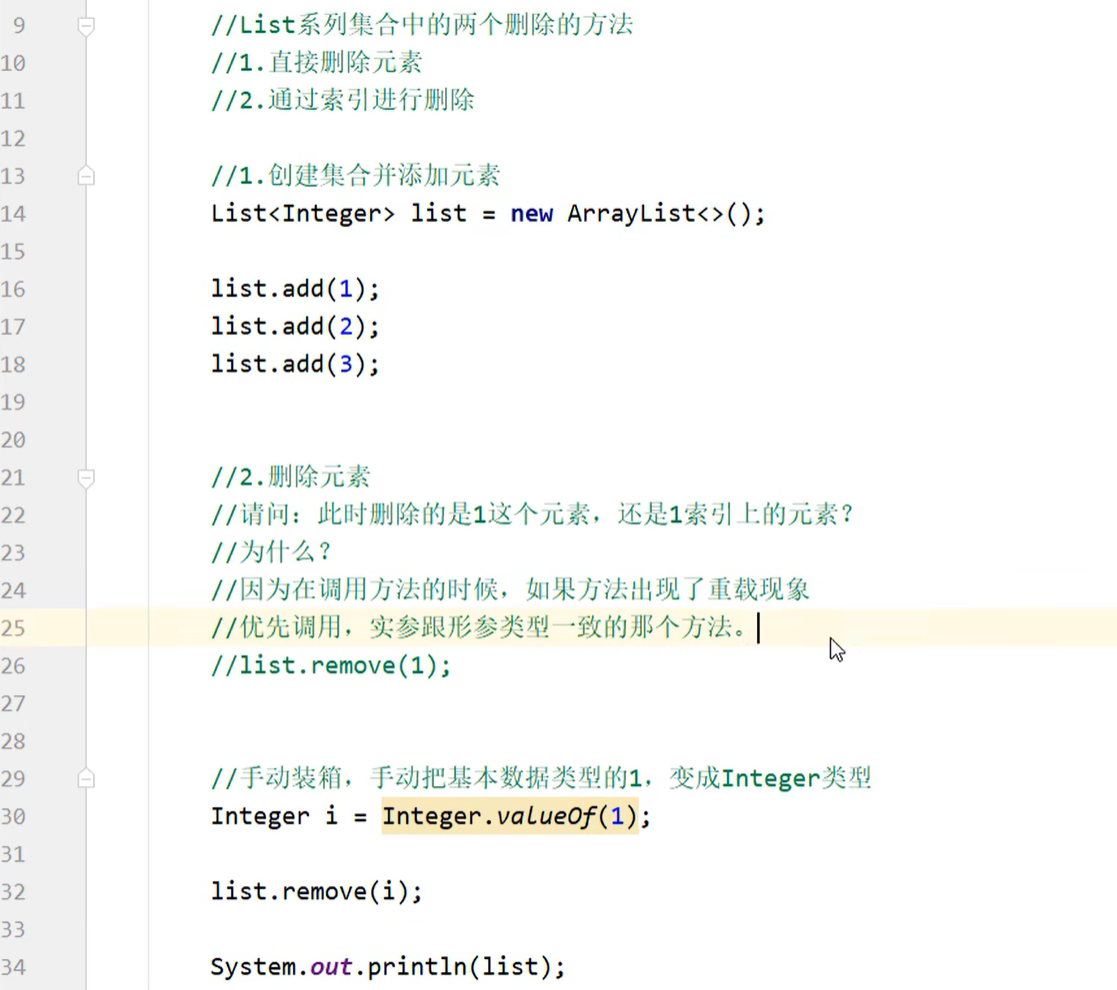 - 因为Collection中定义的是共性方法,所以此时不能通过索引进行删除。只能通过元素的对象进行删除