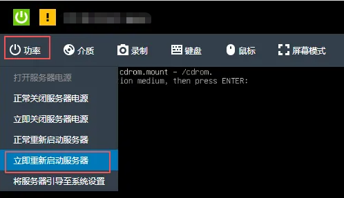 1.挂载ISO后,点击左上角电源按钮重启,按F12