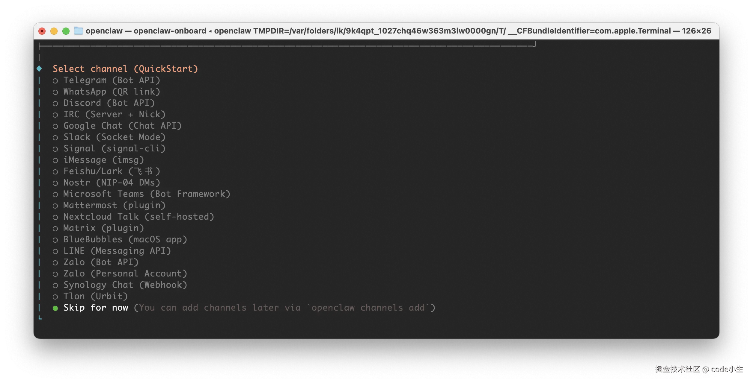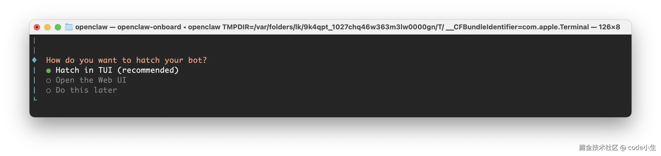 2.1 openClaw安装成功之后会自动进入初始化设置流程