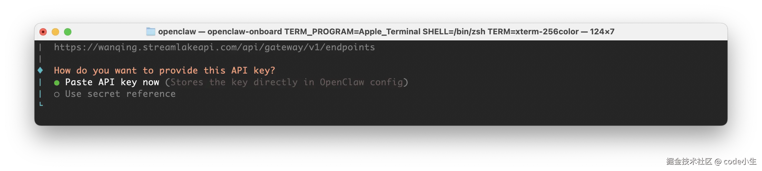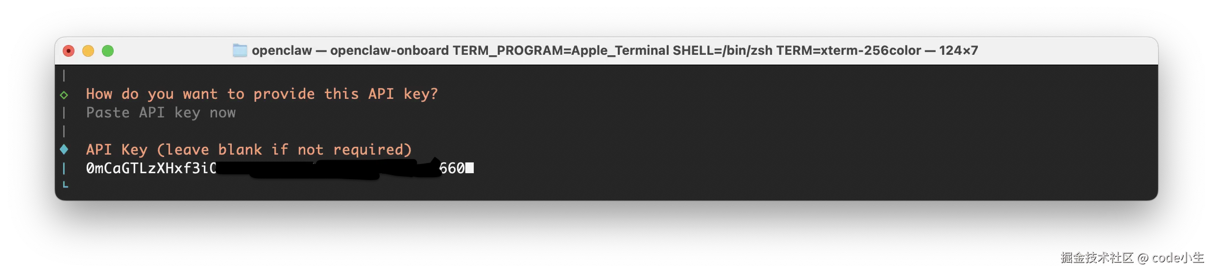 4.4 选择粘贴 API key 回车,立即粘贴