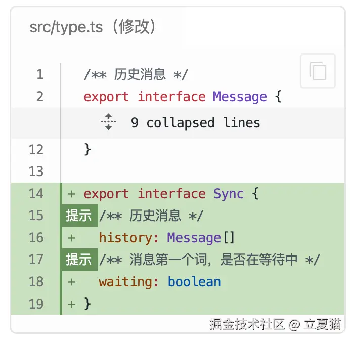 <Bubble> 组件渲染的都是「历史消息」,用 TypeScript 把他定义为 Message 对象: