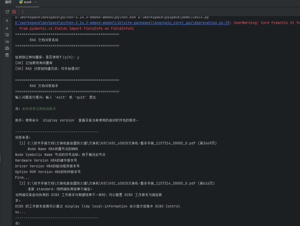 我输入了一个本地的关于交换机的pdf文档,加载到了向量数据库,并保存到了本地;
