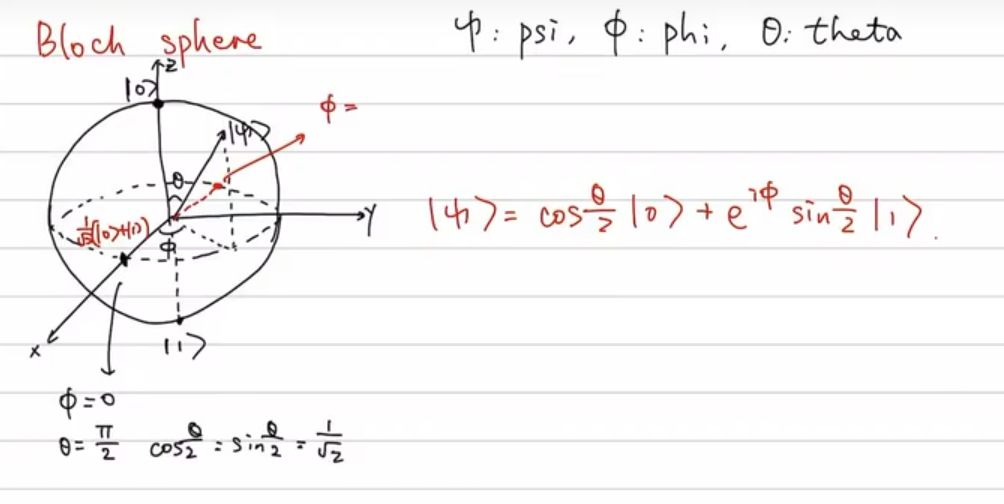 ∣ψ⟩=cosθ/2∣0⟩+e^iϕsinθ/2∣1⟩,该表示对应于 Bloch 球面上的一个点。