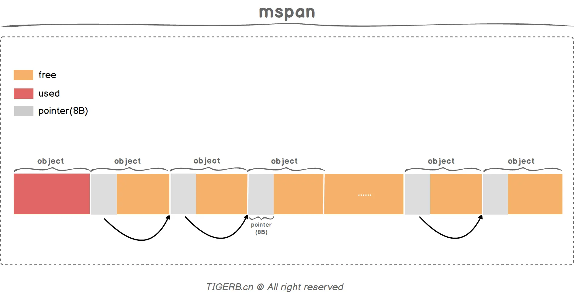 tail waste: 该`mspan`拆分为object之后,mspan剩余末尾浪费的内存