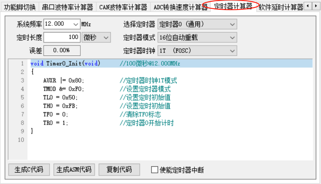 2.5定时器/计数器配置示例(以定时器 0 为例)