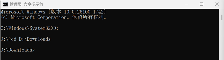 Docker Desktop Installer.exe所在地址为D:\Downloads,那么先切换到D盘再键入命令cd+安装包所在地址