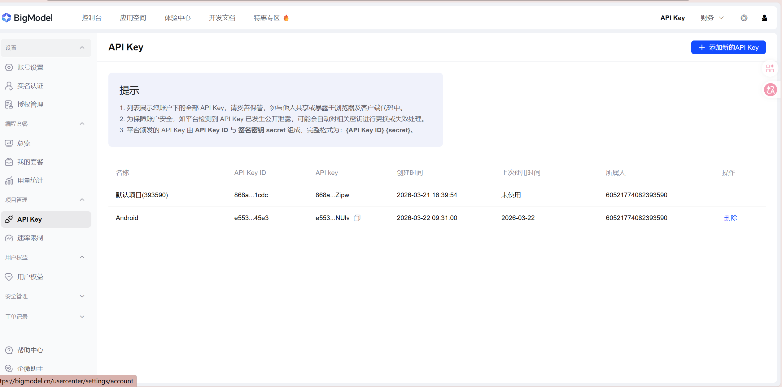 4. 获取你的 API key