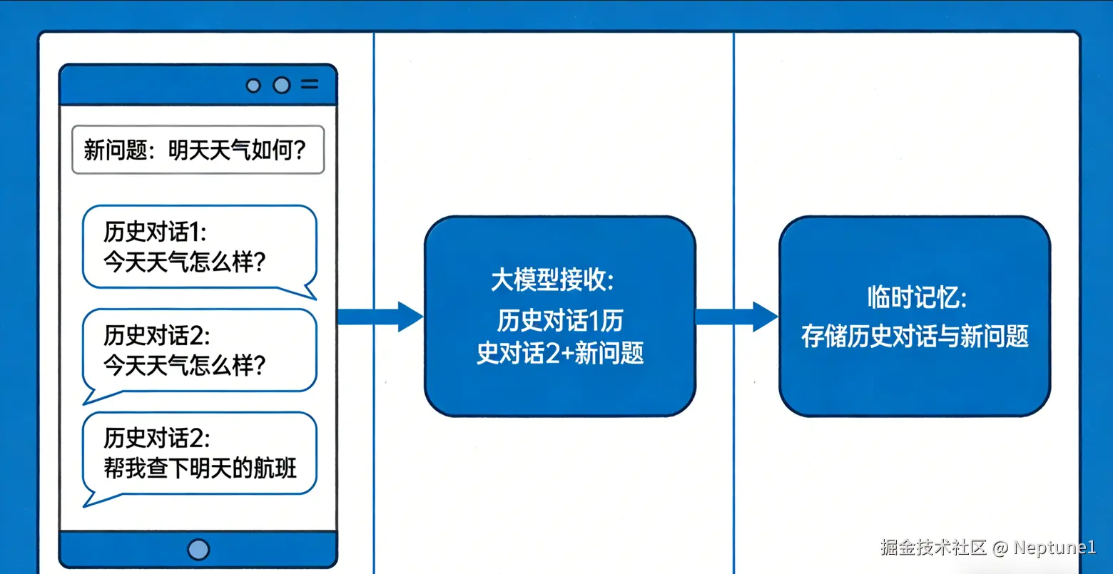 我们平时使用大模型时,发现他好像能记住之前说过的话,但是你是否好奇过,明明大模型本质上只是一个函数,你给他输入,他就给你输出,并不像真实的人一样有记忆,那么他是怎么记住你之前说的话呢?