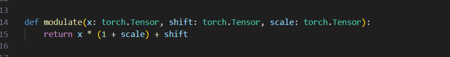 x做「缩放(scale)」,再做「平移(shift)」; - 这是让「全局条件」控制「局部特征」的关键,后面所有的 Transformer 块都在用它。