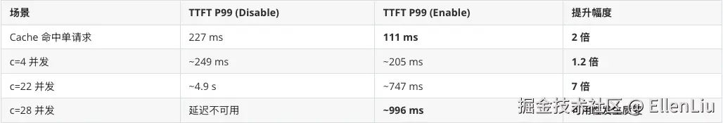 抹平长文本首字惩罚:在系统预热后(Cache 命中),单次长文本推理的 TTFT 被压缩至 100ms 级别,彻底消除了用户的"转圈等待焦虑"。