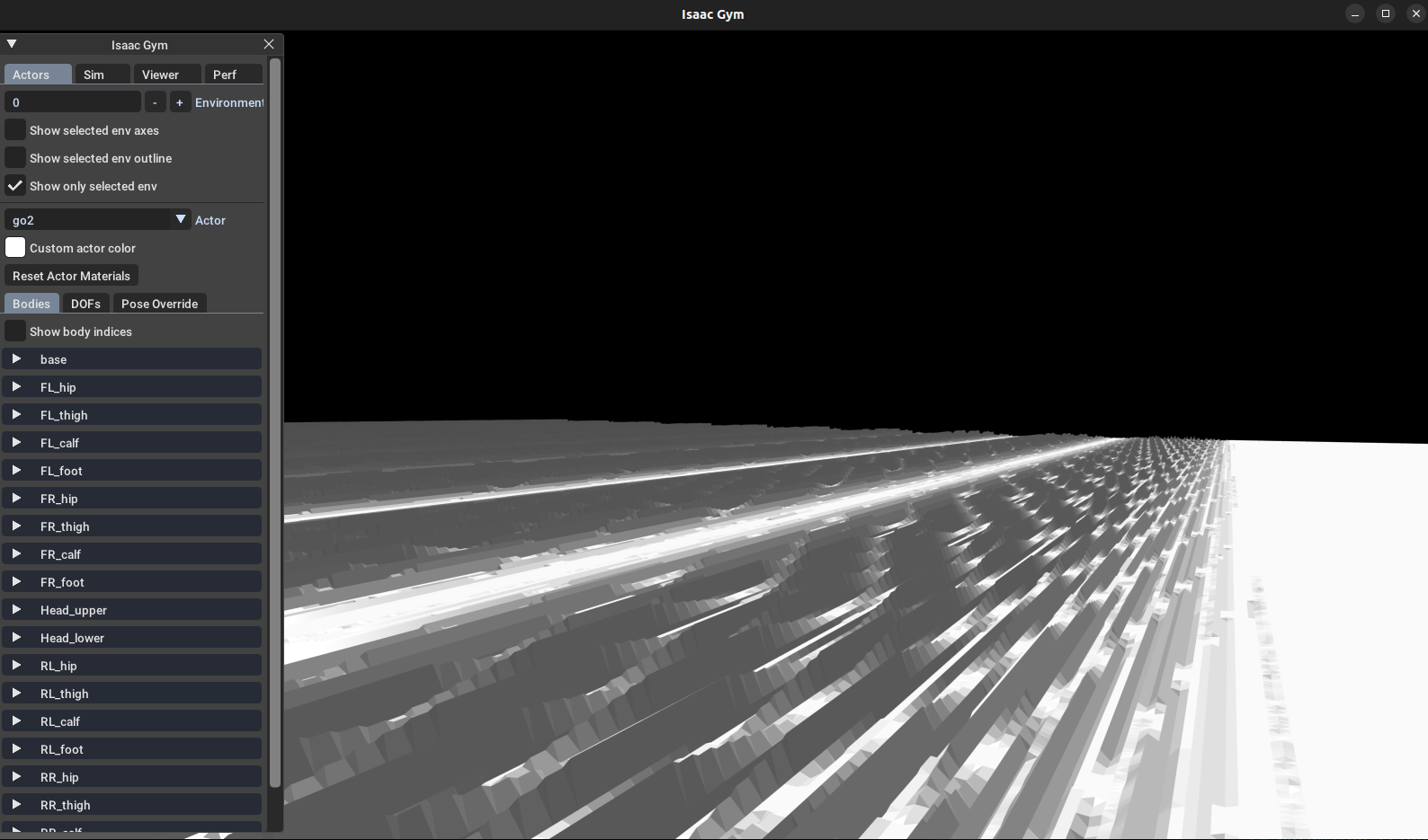 train.py,可以看到新的地形已经被生成,但是机器人生产并没有在地形中心