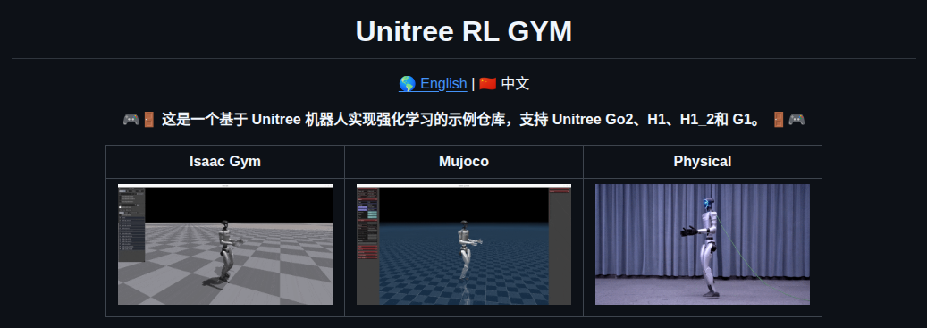 Unitree RL GYM是一个开源的基于 Unitree 机器人强化学习(Reinforcement Learning, RL)控制示例项目,用于训练、测试和部署四足机器人控制策略。该仓库支持多种 Unitree 机器人型号,包括Go2、H1、H1_2 和 G1。仓库地址