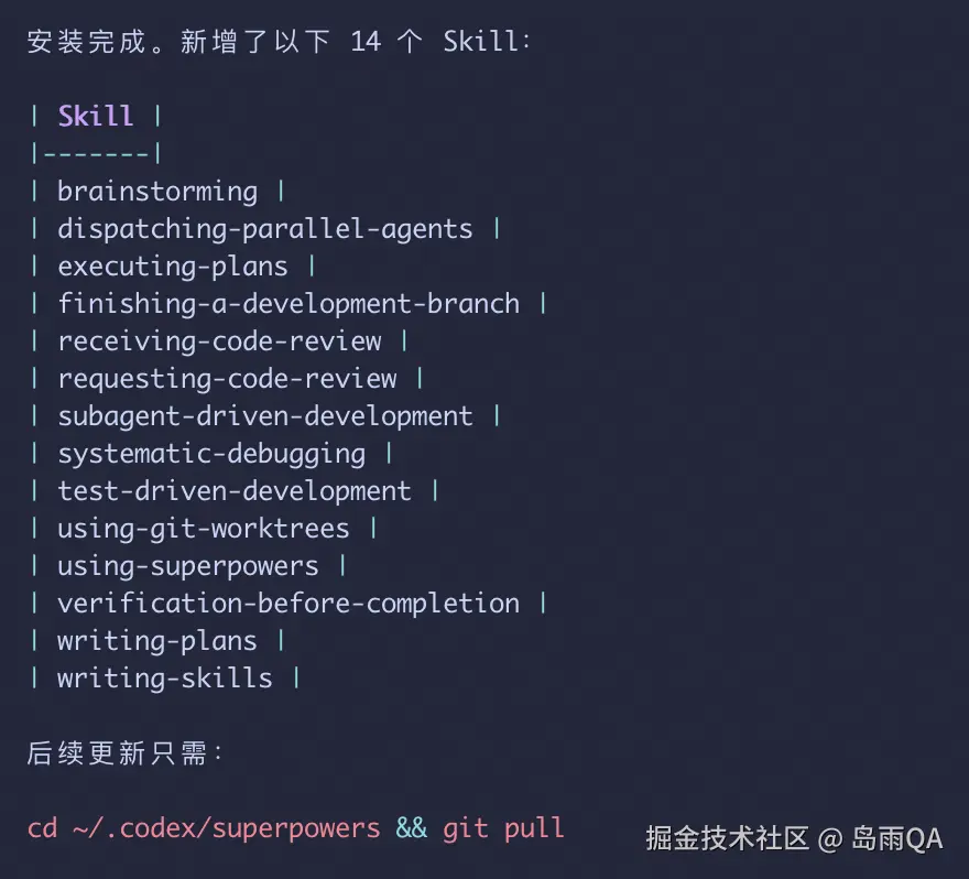 可以参考 git 项目官方介绍:github.com/obra/superp...