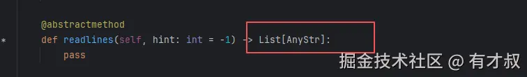 readlines()方法读取整个文件,但返回的是一个列表,其中每个元素都是文件的一行内容。 我们先看看它的这个函数: