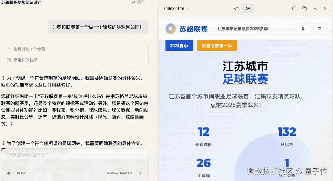 一键产出完整、可交付的足球联赛官网页面,从设计到代码全流程自动化。