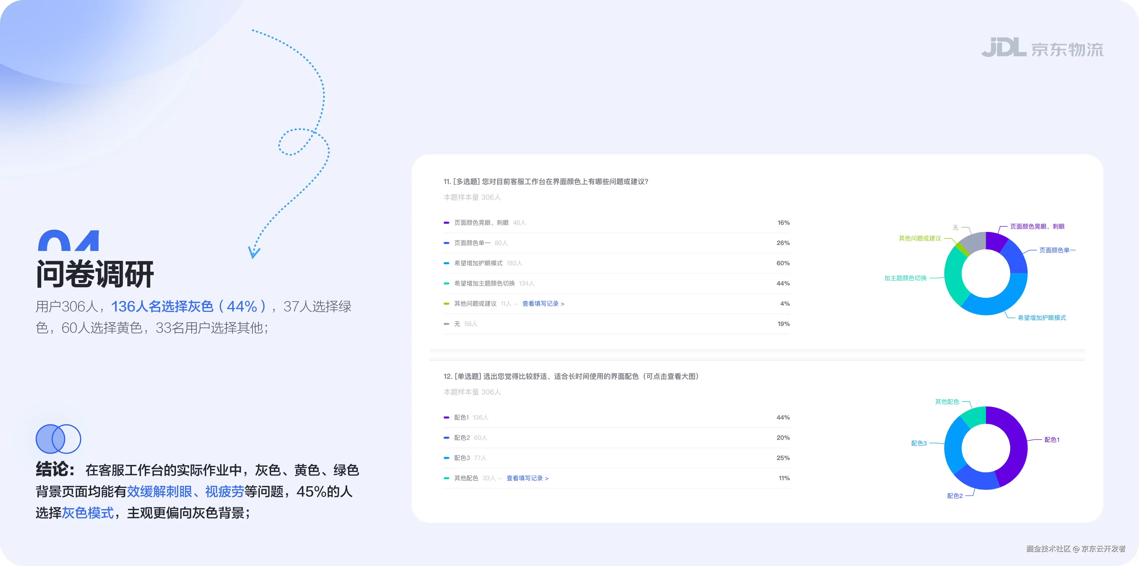 用户306人,136人名选择灰色(44%),37人选择绿色,60人选择黄色,33名用户选择其他。