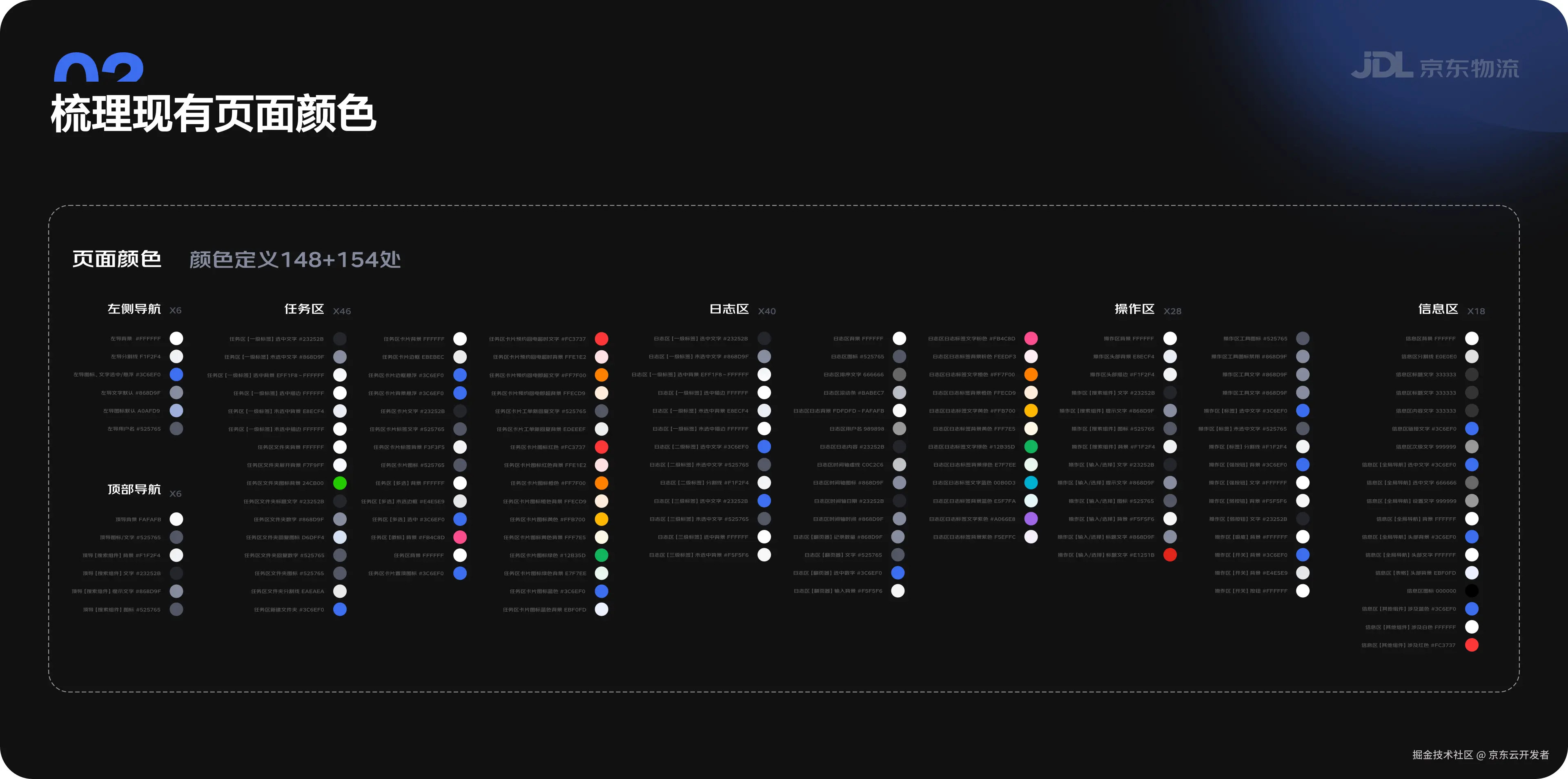 色彩是体现品牌与基因的关键因素,构建科学高效的色彩系统,建立产品的品牌形象,对产品设计极具指导意义。京东物流用户设计部在B端色彩上也进行了一些深入的挖掘和沉淀,一方面希望强化用户的京东物流品牌印象和认知,另一方面构建科学有效的色彩系统,为产品的发展提供优质高效的设计系统基础。