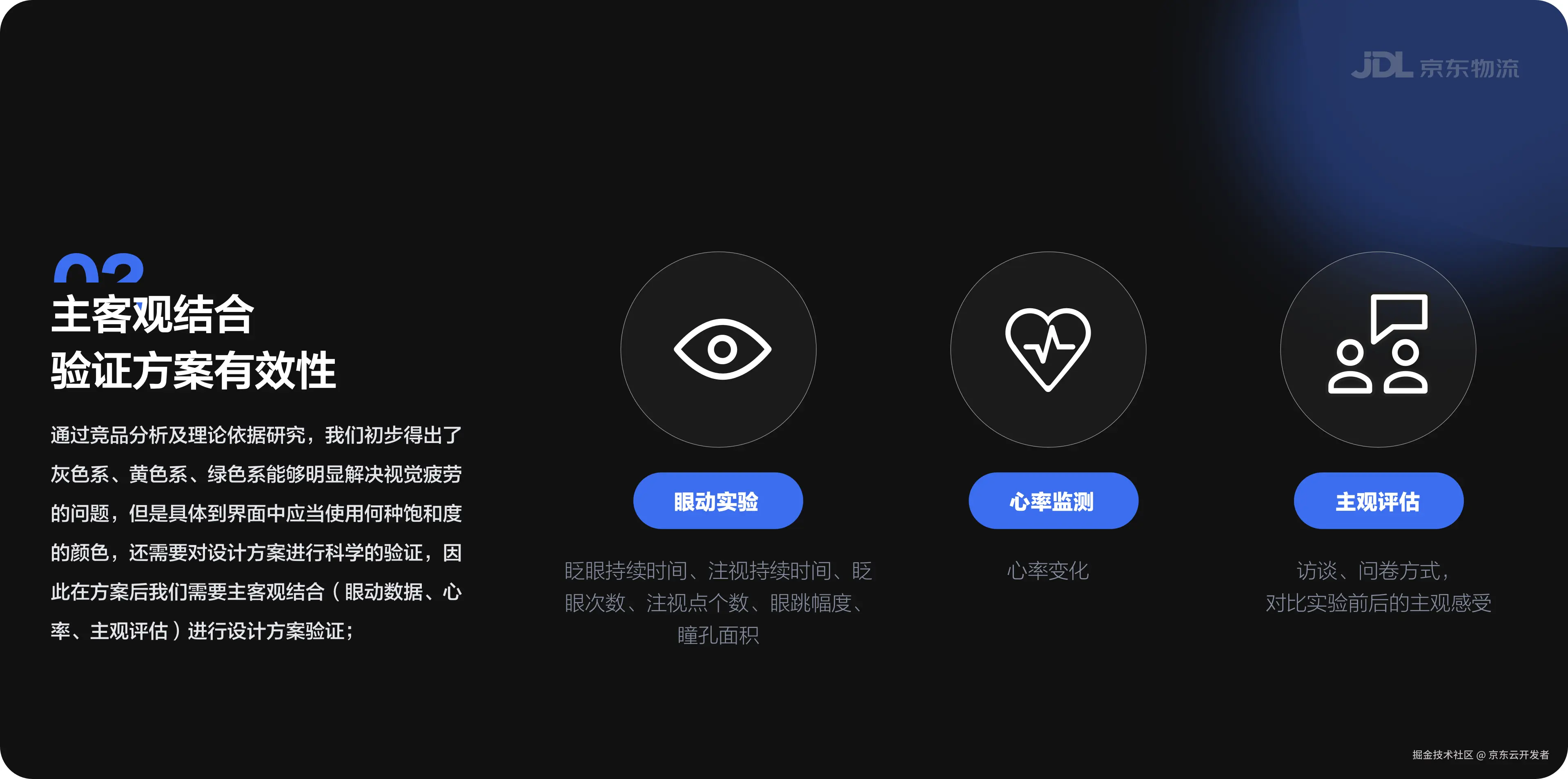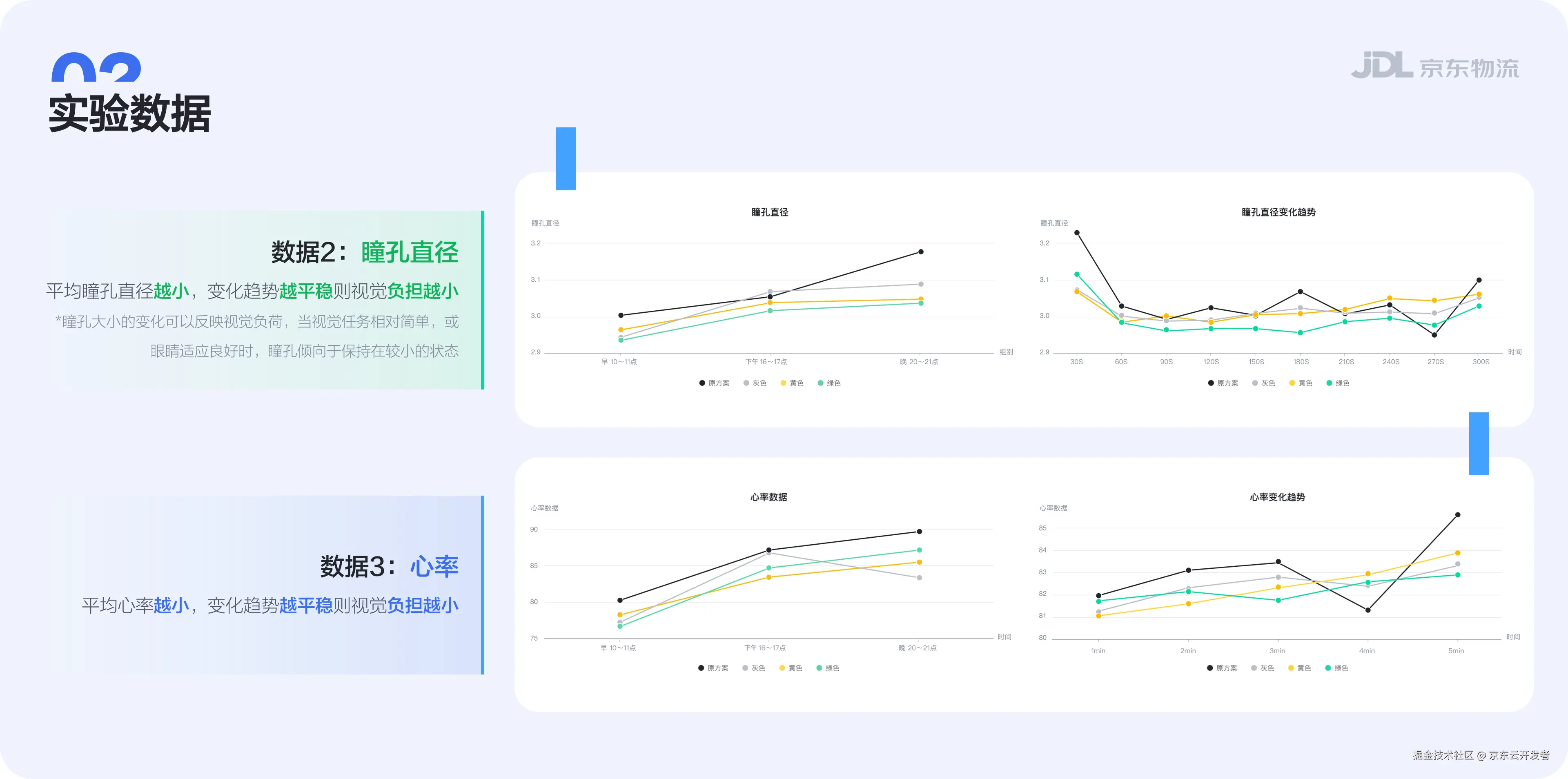 综合竞品分析及理论依据研究结果,我们初步得出了灰色系、黄色系、绿色系能够明显解决视觉疲劳的问题,但是具体到界面中应当使用何种饱和度的颜色,还需要对设计方案进行科学的验证,因此在方案后我们需要主客观结合(眼动数据、心率、主观评估)进行设计方案验证:
