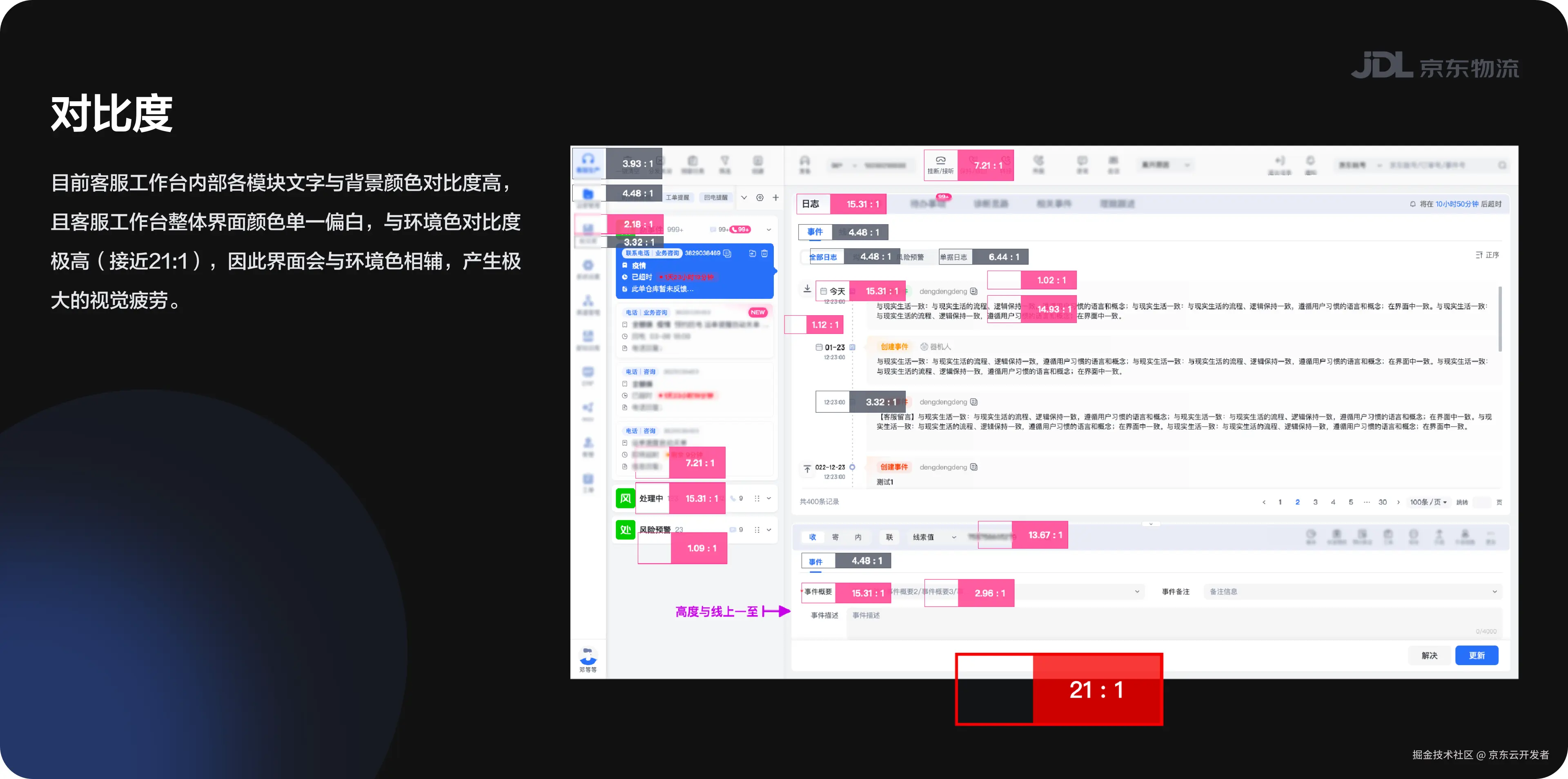 因此在进行客服工作台体验走查专项时,我们调研了并搜集了物流一线客服面临的体验及视觉层面问题、结合无障碍设计标准及其他相关资料,展开深入的研究分析。