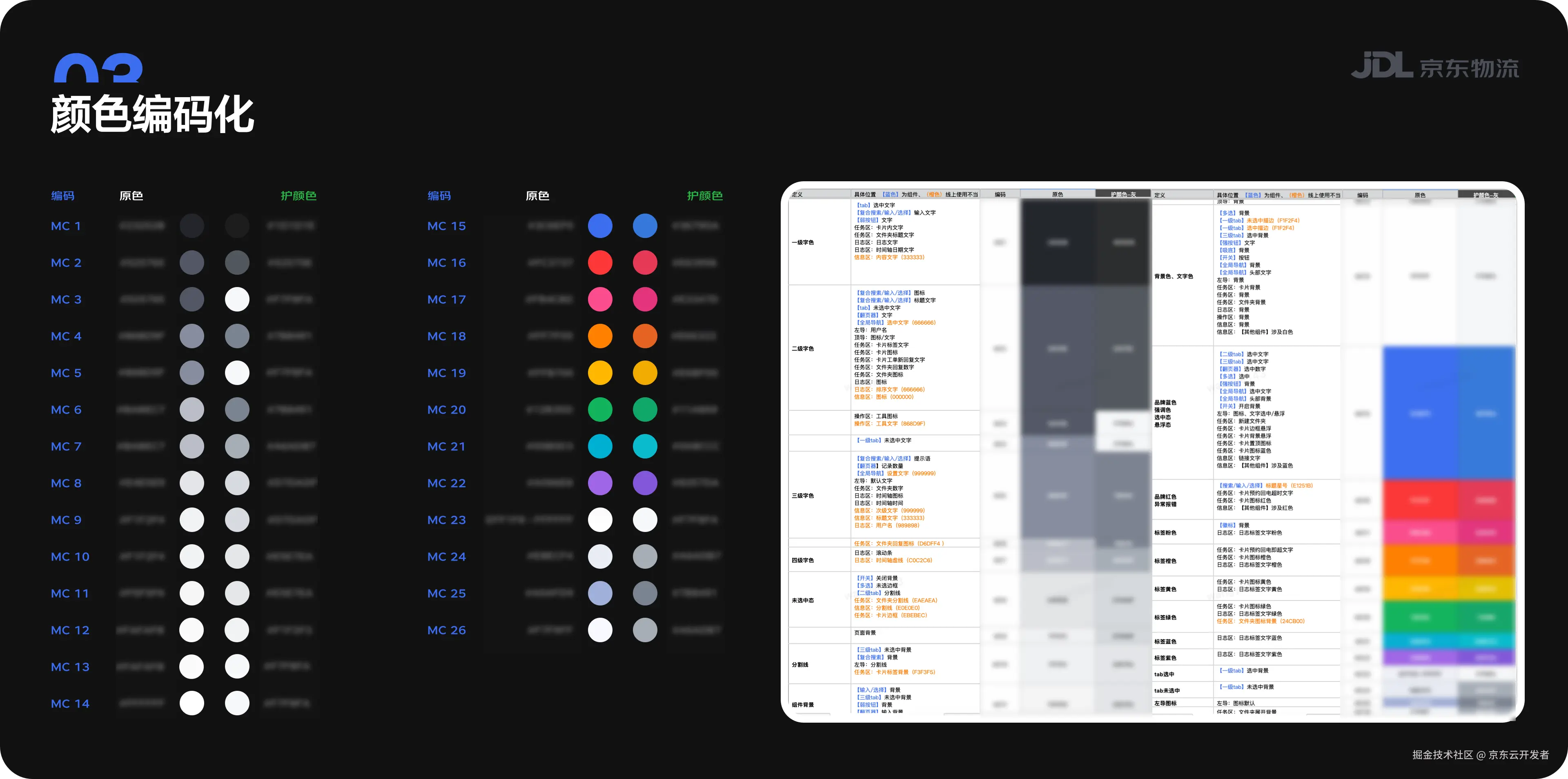 将颜色编码在页面上进行结构化标注,并交付开发,结合颜色编码表,实现一次开发上线三套护色