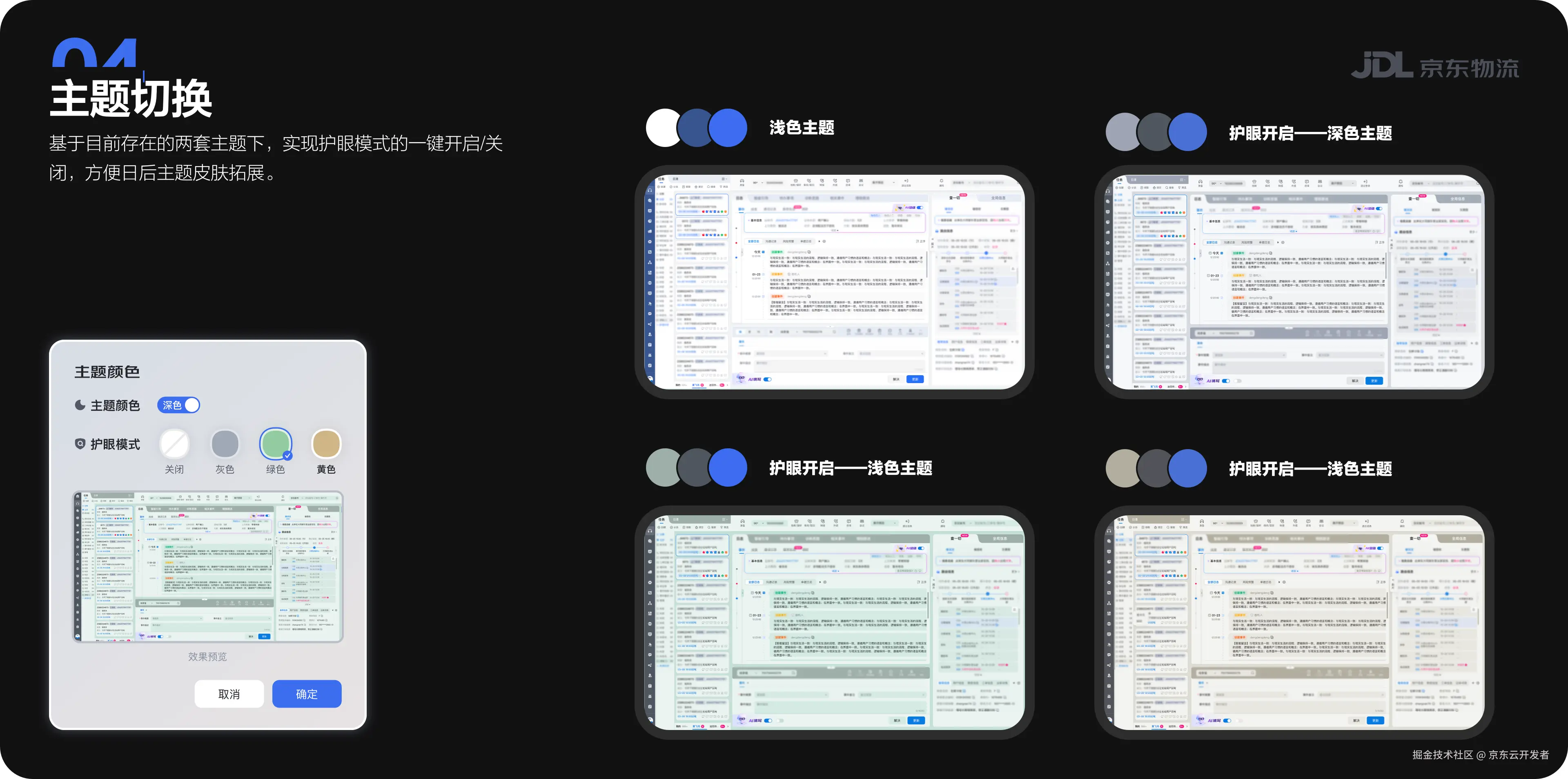 根据矫正后的护眼色优化设计方案,并在客服系统进行主题切换设置,实现护主题/护眼色一键换肤。