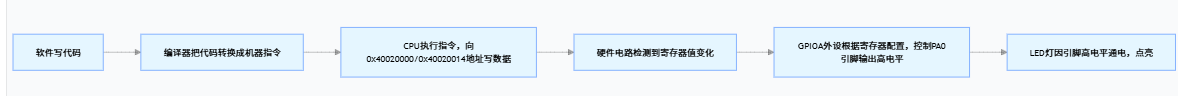 我们可以通过读写外设寄存器,来配置 / 控制硬件,最终让硬件产生引脚电平、时序、数据收发等行为