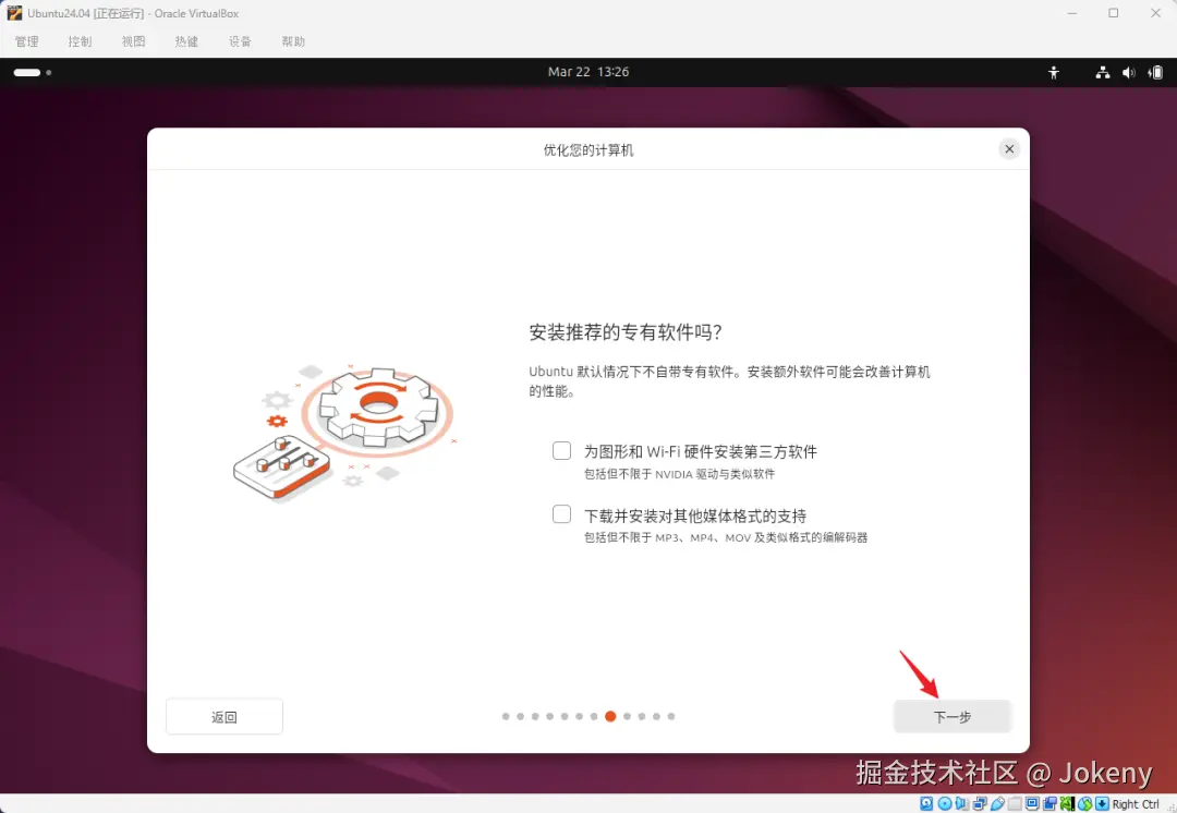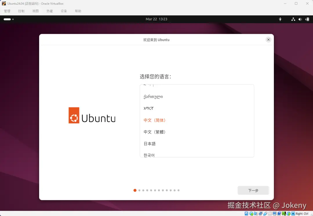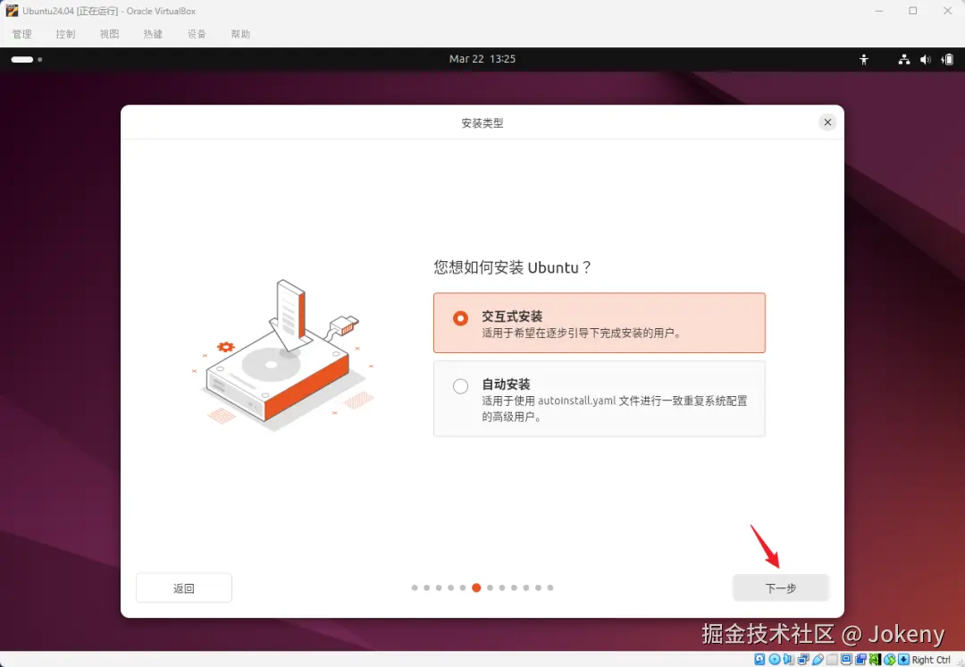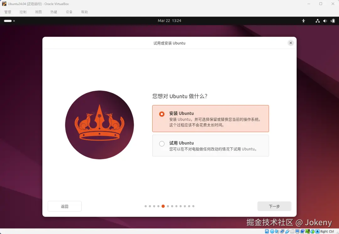 - 安装类型选"擦除磁盘并安装Ubuntu"(别怕,擦的是虚拟硬盘,不是你真硬盘)