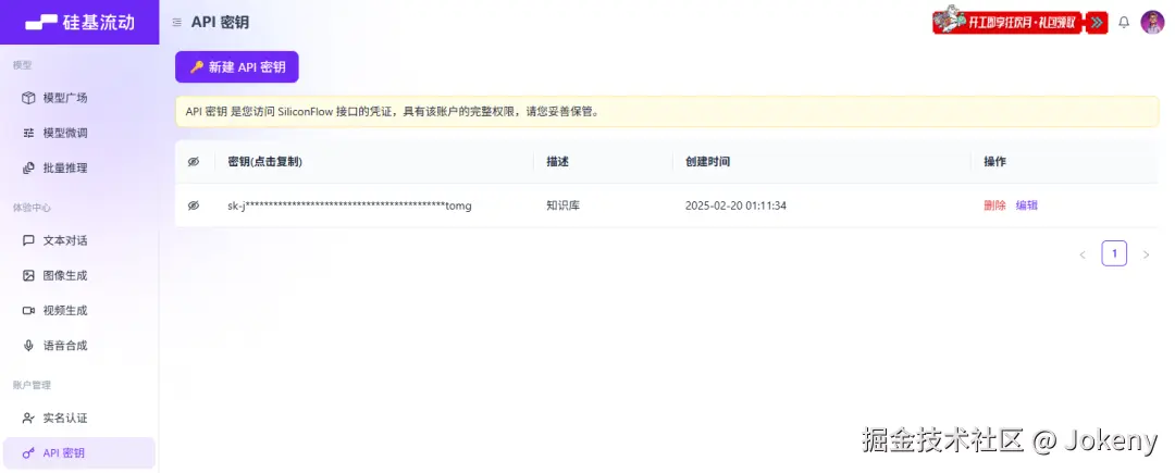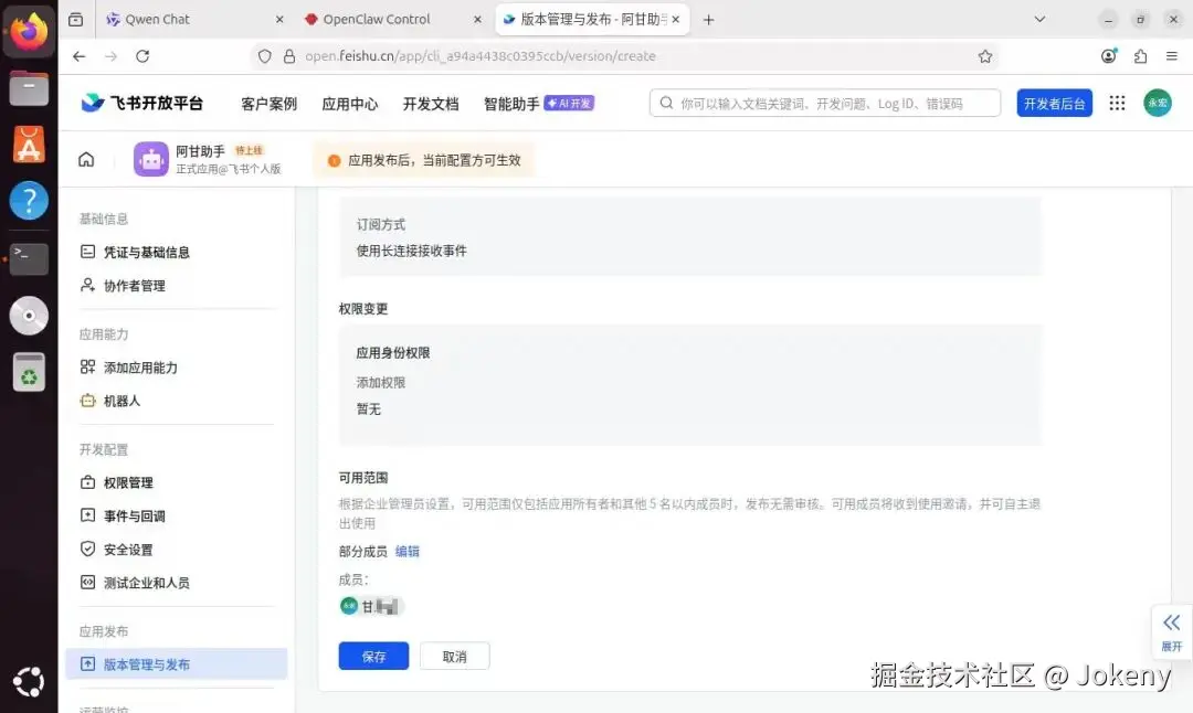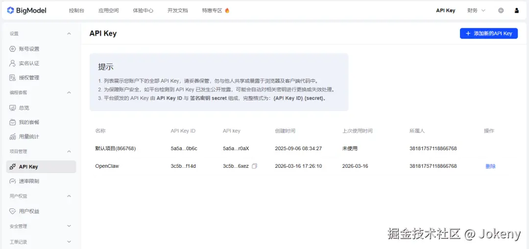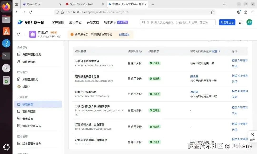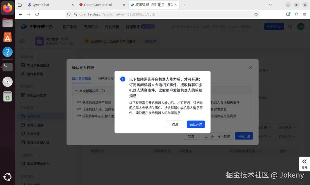 填写应用名称(比如"AI助手"),应用描述随便写,点击"创建"按钮后进入应用详情页