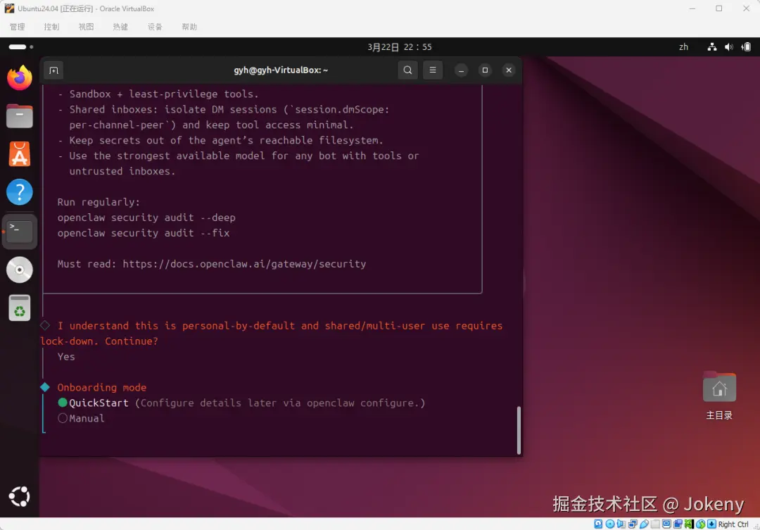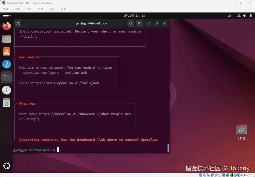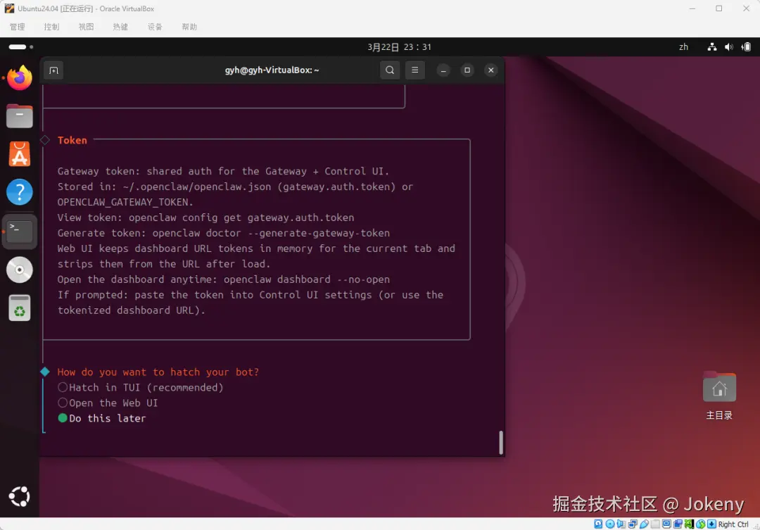 重启进入Ubuntu桌面后,我们开始安装OpenClaw。