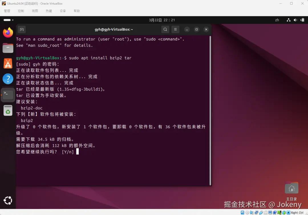回车,输入你的密码(输的时候屏幕不显示,正常),然后输入 y 回车确认。