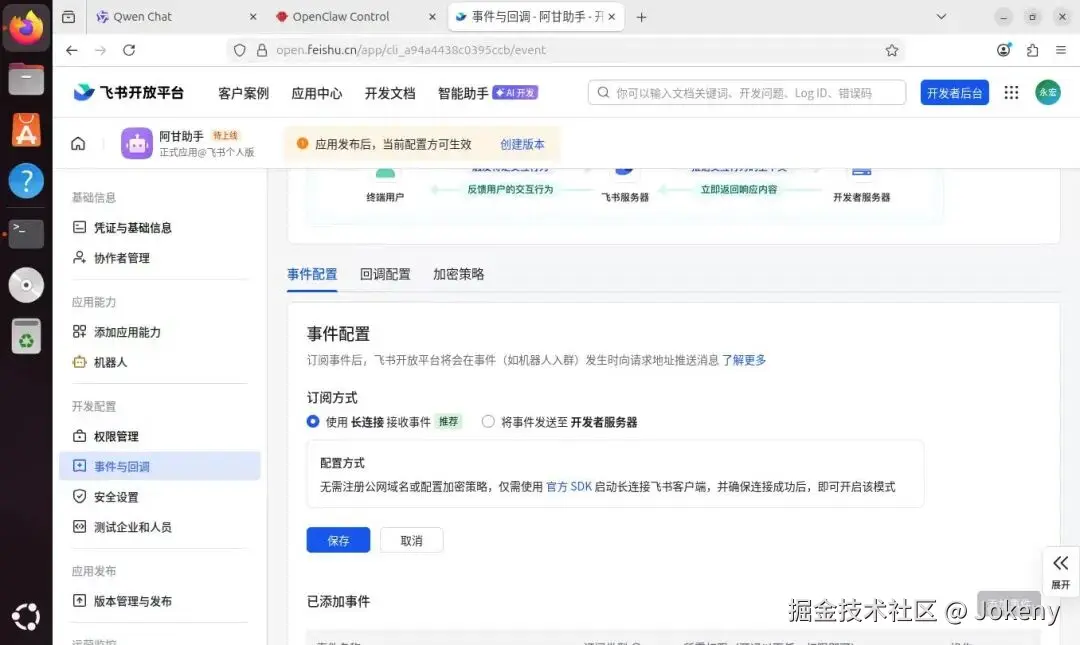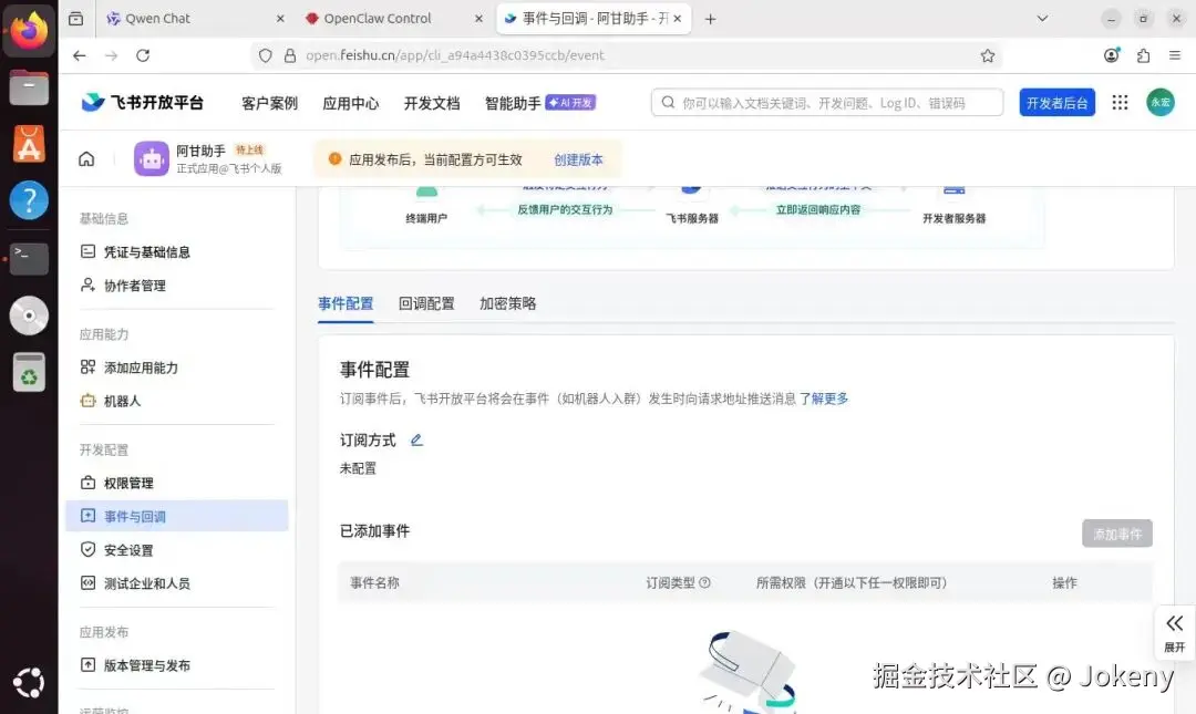 点击左侧菜单【事件与回调】-【订阅方式】,点击编辑按钮
