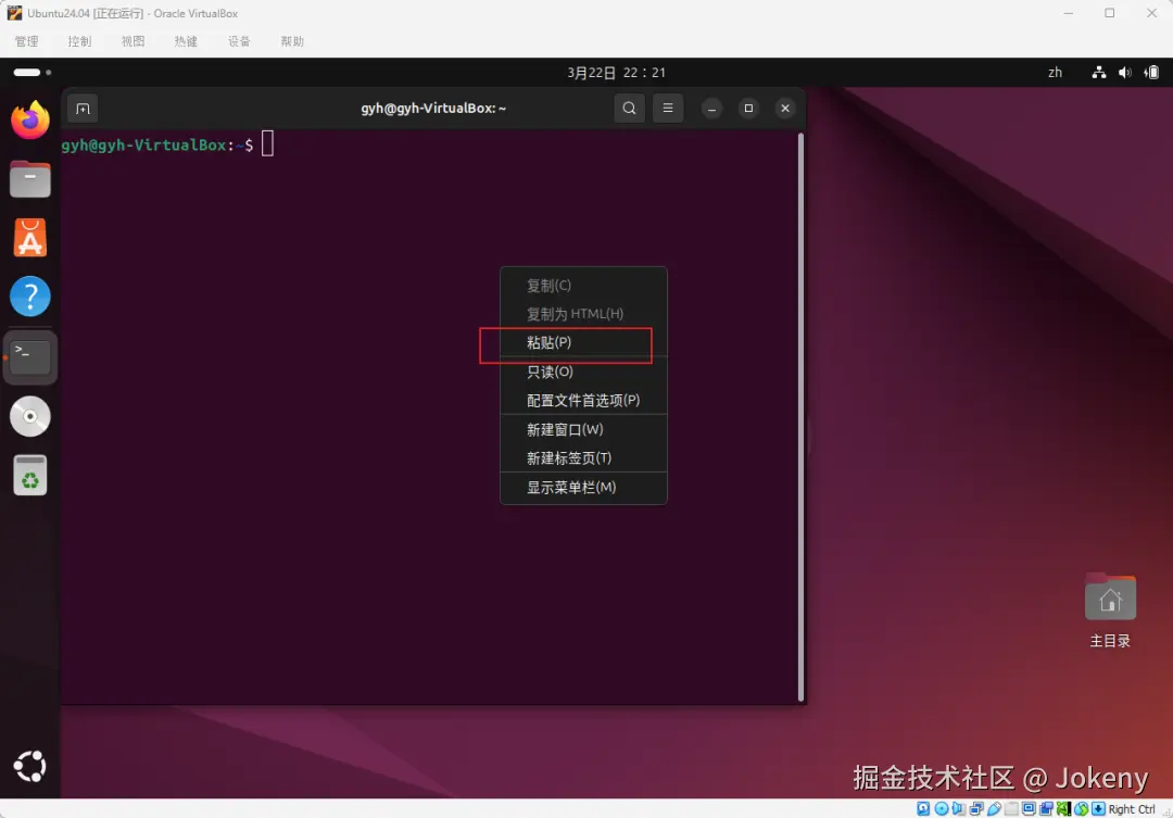 注意,在Ubuntu系统中,粘贴的快捷键是Shift+Insert或鼠标右键
