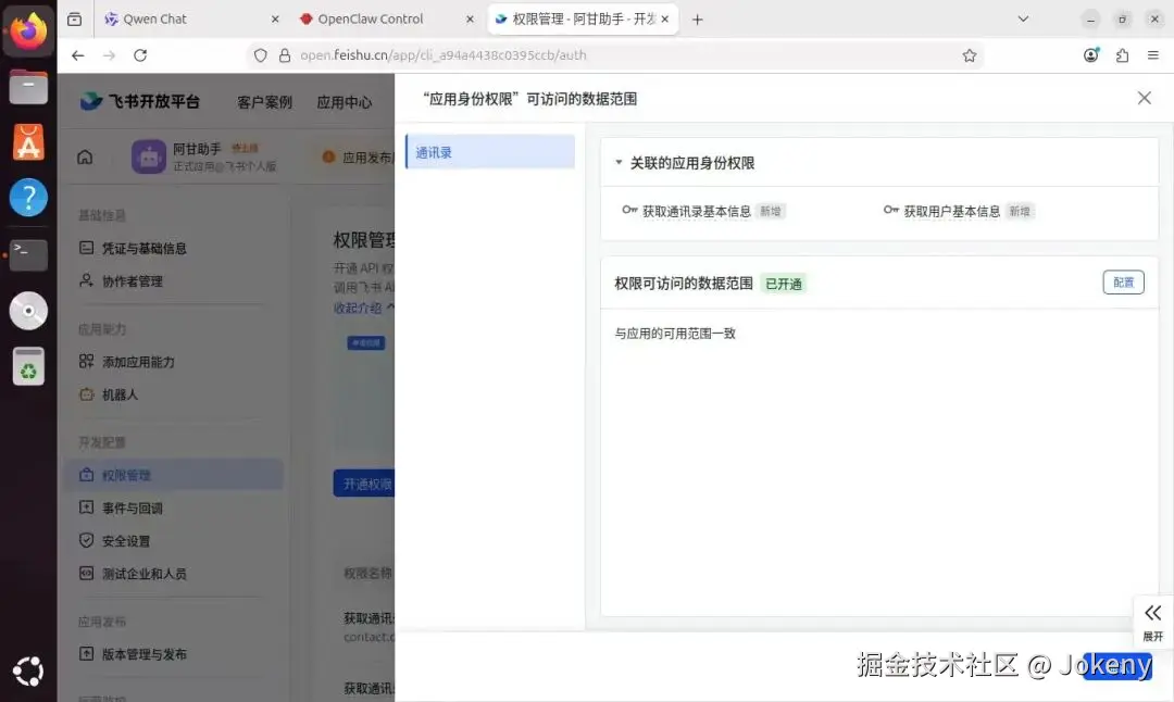 确认"应用身份权限"可访问的数据范围,点击【确认】