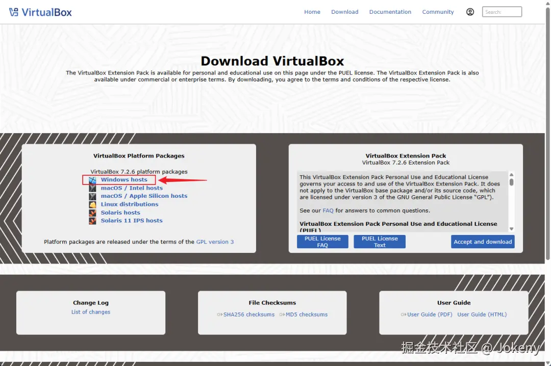官网 virtualbox.org → 点"Download" → 选"Windows hosts"。