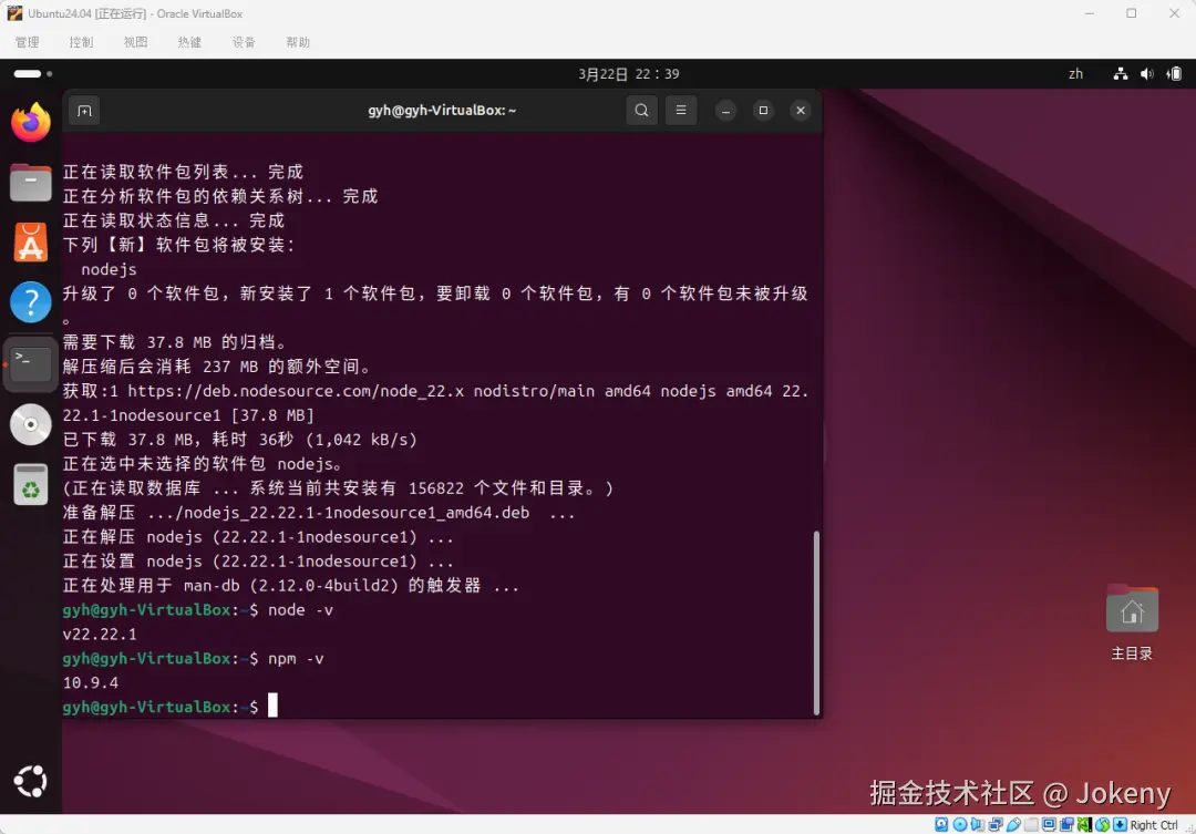 curl -fsSL https://deb.nodesource.com/setup_22.x | sudo -E bash - && sudo apt install -y nodejs