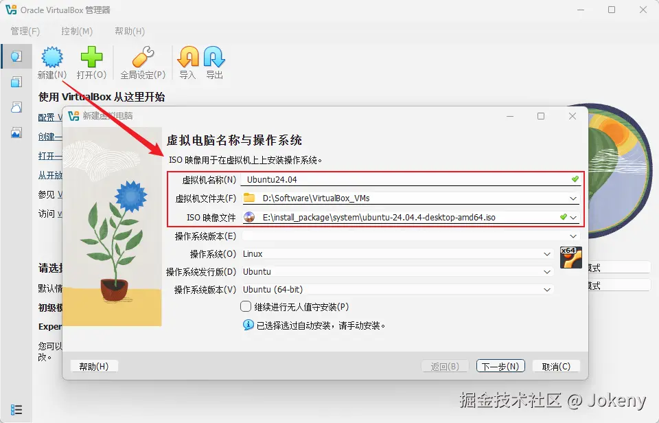 - ISO镜像:浏览选中你下载的Ubuntu那个.iso文件