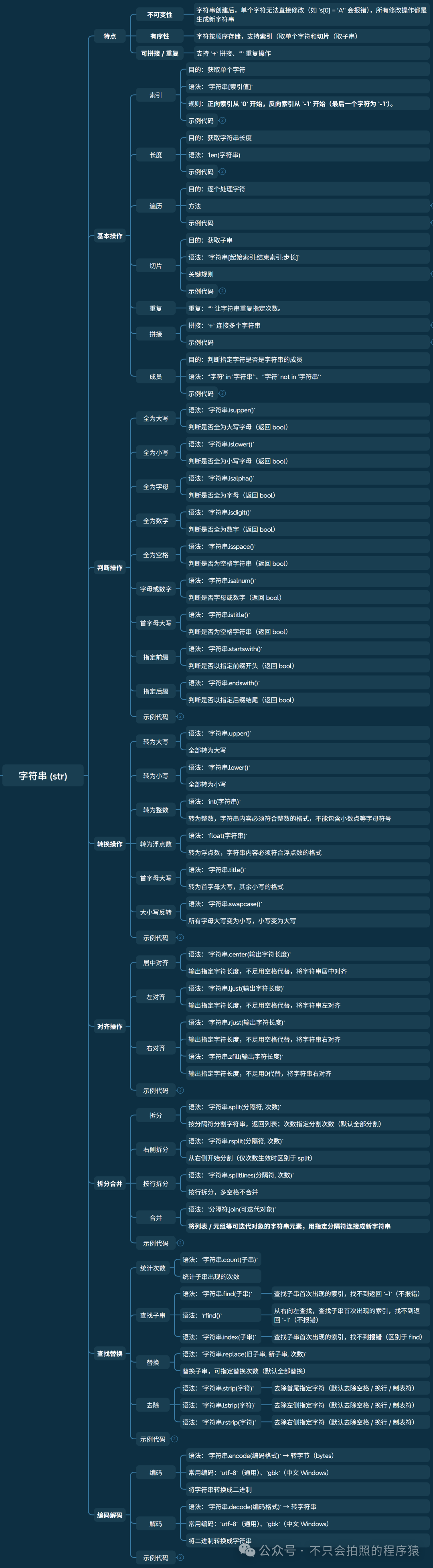 • 不可变性 :字符串创建后,单个字符无法直接修改(如 s[0] = 'A' 会报错),所有修改操作都是生成新字符串。