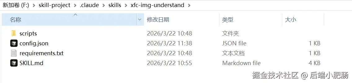 话不多说,正式开始 xfc-img-understand 这个 Skill 的搭建。