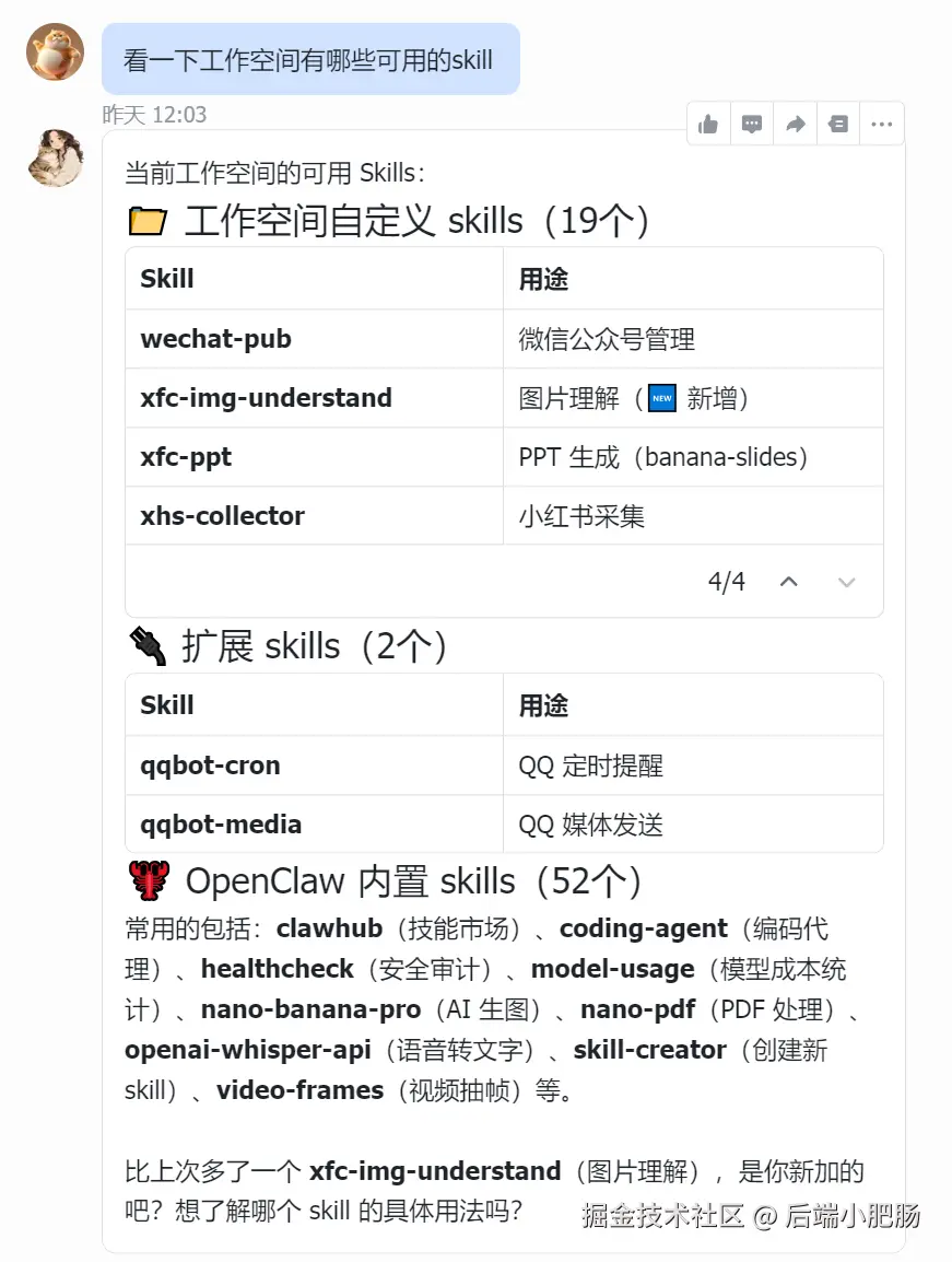 以上就是OpenClaw +claude skill完成图像理解的全部教程,动手能力强的读者可以跟着教程实践一遍。上述skill已经被收录到了小肥肠共学群中,需要原件可以加入社群直接使用哦。