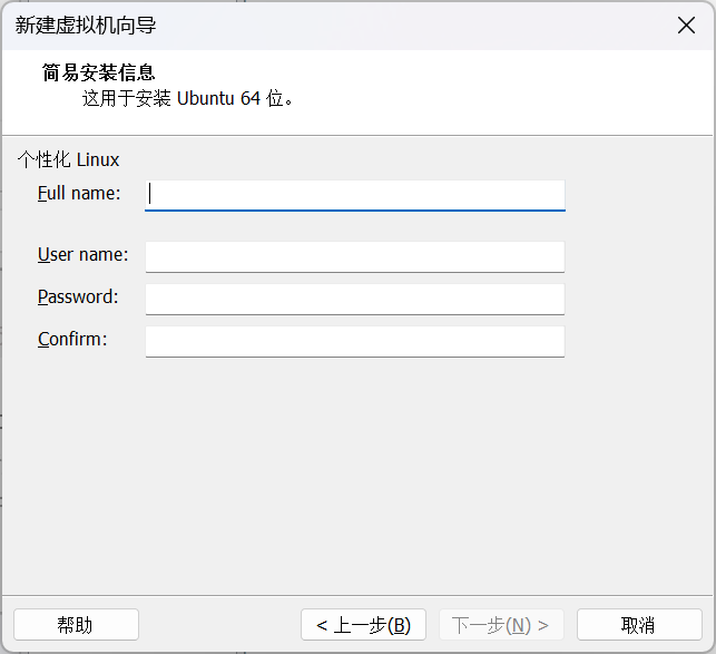 - 这里让你预填 Ubuntu 系统安装所需的用户信息。这样,在安装过程中,系统会直接用你填写的信息创建好用户账号,填写完下一步。