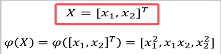 核函数用**K(X1,X2)**表示,它是一个数,其中X1、X2分别是样本类别。等于(X1)的转置这个行向量,和维度相同的列向量