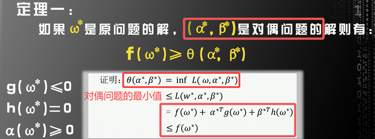 上面的对偶函数就是这样,像高数中的用拉格朗日乘子法 去求解最优化问题差不多。通常,我们可以根据对偶函数求解出满足L函数的最小的w值,同时把这个最小的w对应的L函数值记为