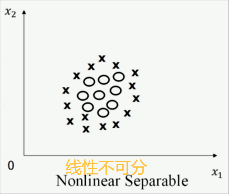 但是,如果我们遇到两类样本,用一条直线分不开怎么办?