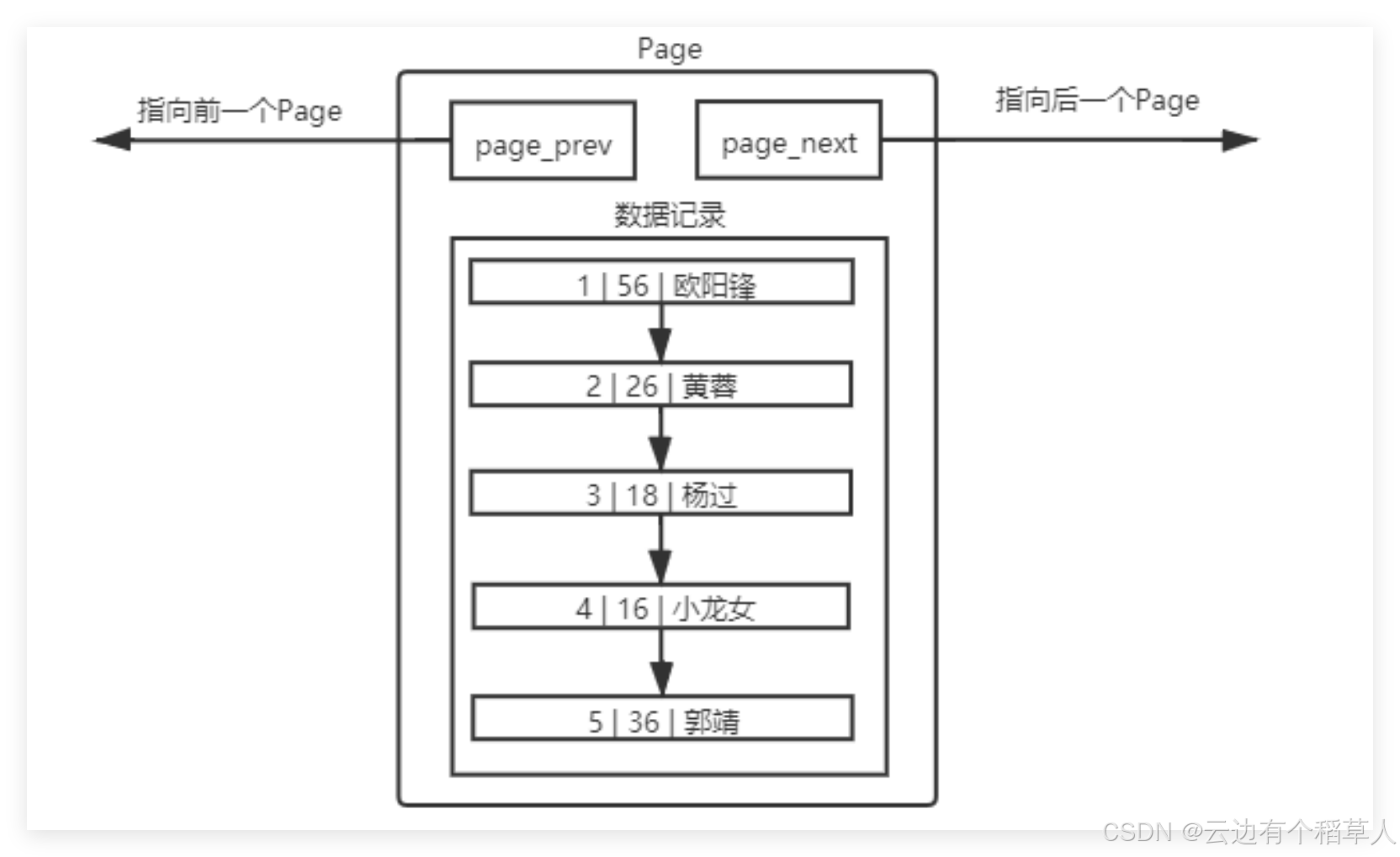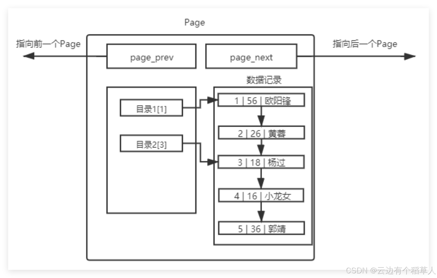 - 如果数据比较的多,多个Page彼此使用双链表链接起来,每个Page内部的数据也是基于链表的。那么,查找特定一条记录,线性查找,效率低下。