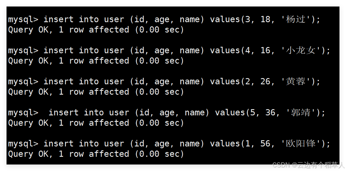 -- 在创建表的时候,直接在字段名后指定 primary key