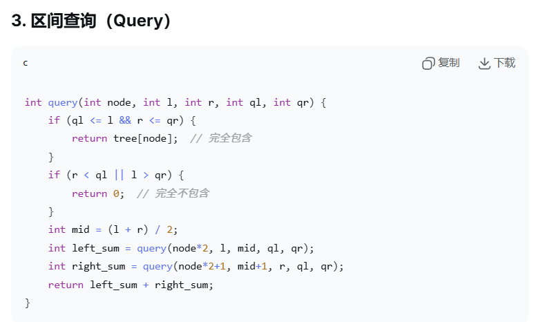int right_max = query(node * 2 + 1, mid + 1, r, ql, qr);