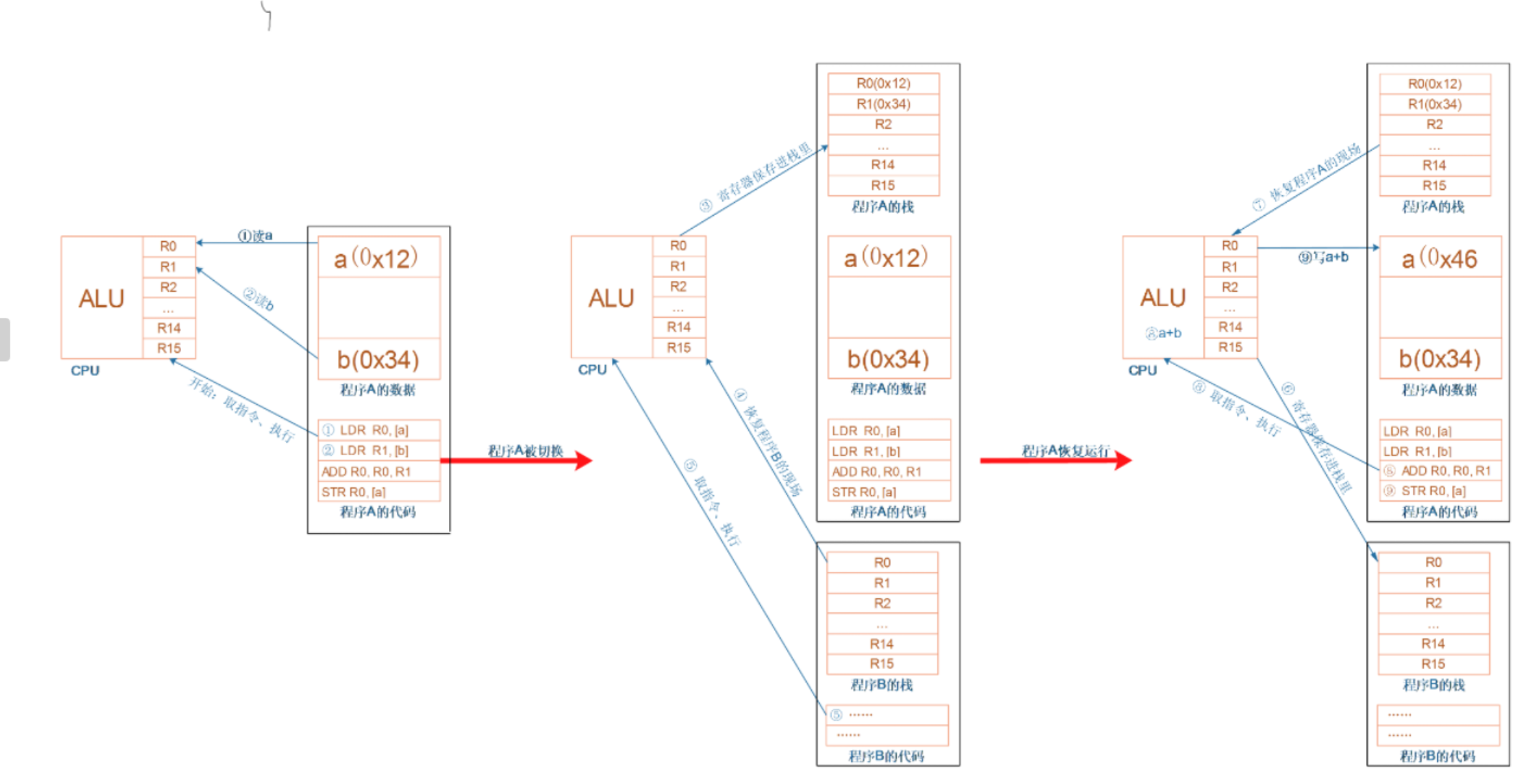 (1)中断上文:硬件通过中断触发信号,导致内核调用中断处理程序,进入内核空间。这个过程中,硬件的一些变量和参数也要传递给内核,内核通过这些参数进行中断处理。中断上文可以看作就是硬件传递过来的这些参数和内核需要保存的一些其他环境(主要是当前被中断的进程环境。
