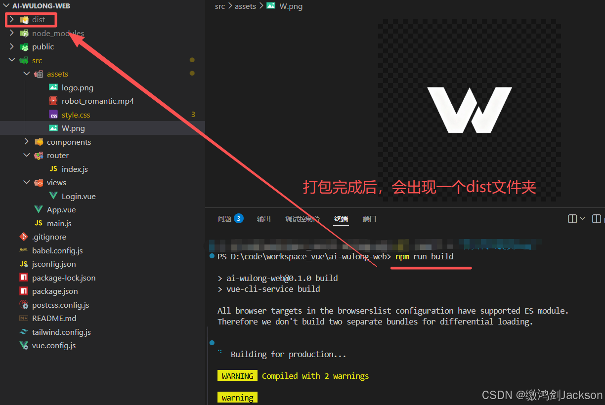 5.将本地vue项目打包,获取dist文件夹