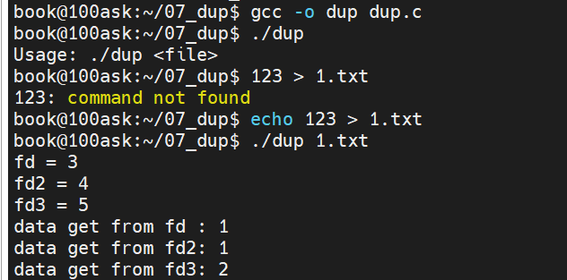 printf("data get from fd3: %c\n", buf[0]); // 输出文件第2个字符(共享偏移量)
